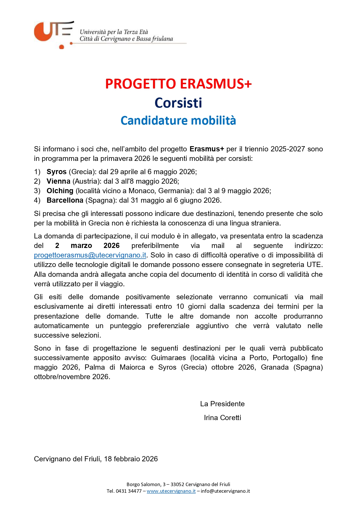 Mobilità di gruppo per corsisti
