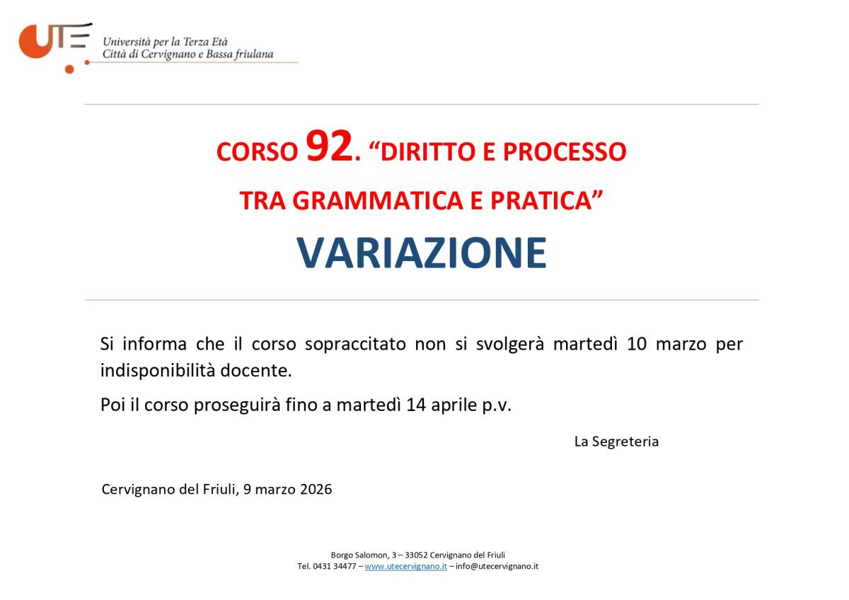 Corso aperto - ingresso libero fino ad esaurimento posti